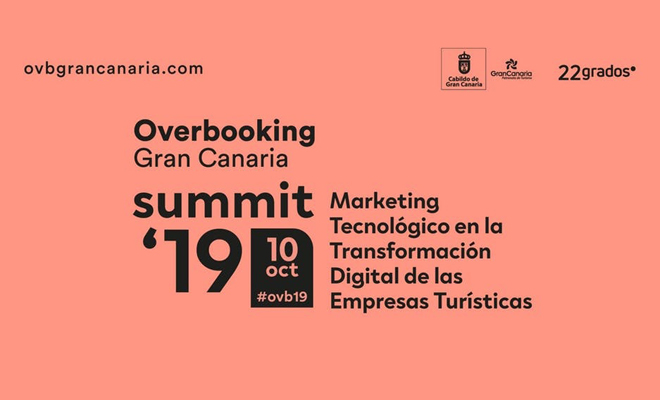 Mañana día 10 de octubre se celebra la quinta edición de Overbooking Gran Canaria Summit 2019 (OVB19), el gran evento de comunicación y marketing turístico. Está organizado por el Patronato de Turismo de Gran Canaria con la compañía de 22grados, en el Auditorio Alfredo Kraus, bajo el título ‘Marketing tecnológico en la transformación digital de las empresas turísticas´.