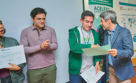 A lo largo de la semana del 10 al 14 de diciembre, Santa Cruz de Tenerife se ha convertido, una vez más, en un espacio abierto a proyectos innovadores, como el caso de la empresa Pinexports, que ha creado el joven coruñés Román Sánchez Fernández, quien recibió el préstamo participativo Mentor Coinvierte, que entrega un equipo de inversores a uno de los proyectos. El consejero de Turismo del Cabildo, Alberto Bernabé, explica que “esperamos que durante la semana que han pasado hayan podido comprobar las excepcionales ventajas que les ofrece la Isla para que instalen aquí su empresa”. ●