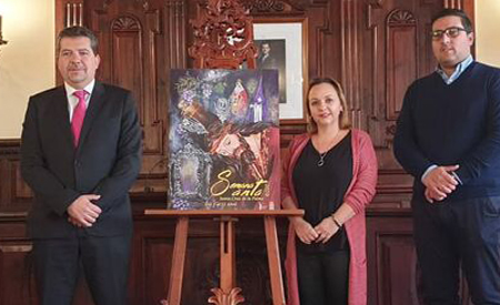 Una obra de la artista Marta Rodríguez Castro, licenciada en Historia del Arte, ha sido elegida como cartel de la Semana Santa de Santa Cruz de La Palma, declarada Fiesta de Interés Turístico de Canarias, que en 2020 se celebra entre los días 5 (Domingo de Ramos) y 12 de abril. La obra, una pintura en acrílico, nos lleva a la noche del Miércoles Santo, donde destaca la imagen sevillana del Señor de la Caída, del imaginero Benito de Hita y Castillo. A su alrededor y en último término, sobresale la torre del antiguo convento de San Francisco como arquitectura reconocida del entramado urbano de la ciudad. El cartel muestra delante la imagen de la Verónica como recuerdo de la teatralidad que mantiene Santa Cruz de La Palma a lo largo de la Semana Santa, a lo que se une el cofrade anónimo. La artista aprovecha para su obra el humo del incienso que simboliza el olor que inunda las calles durante esta celebración, junto a la representación de glicinias. ●